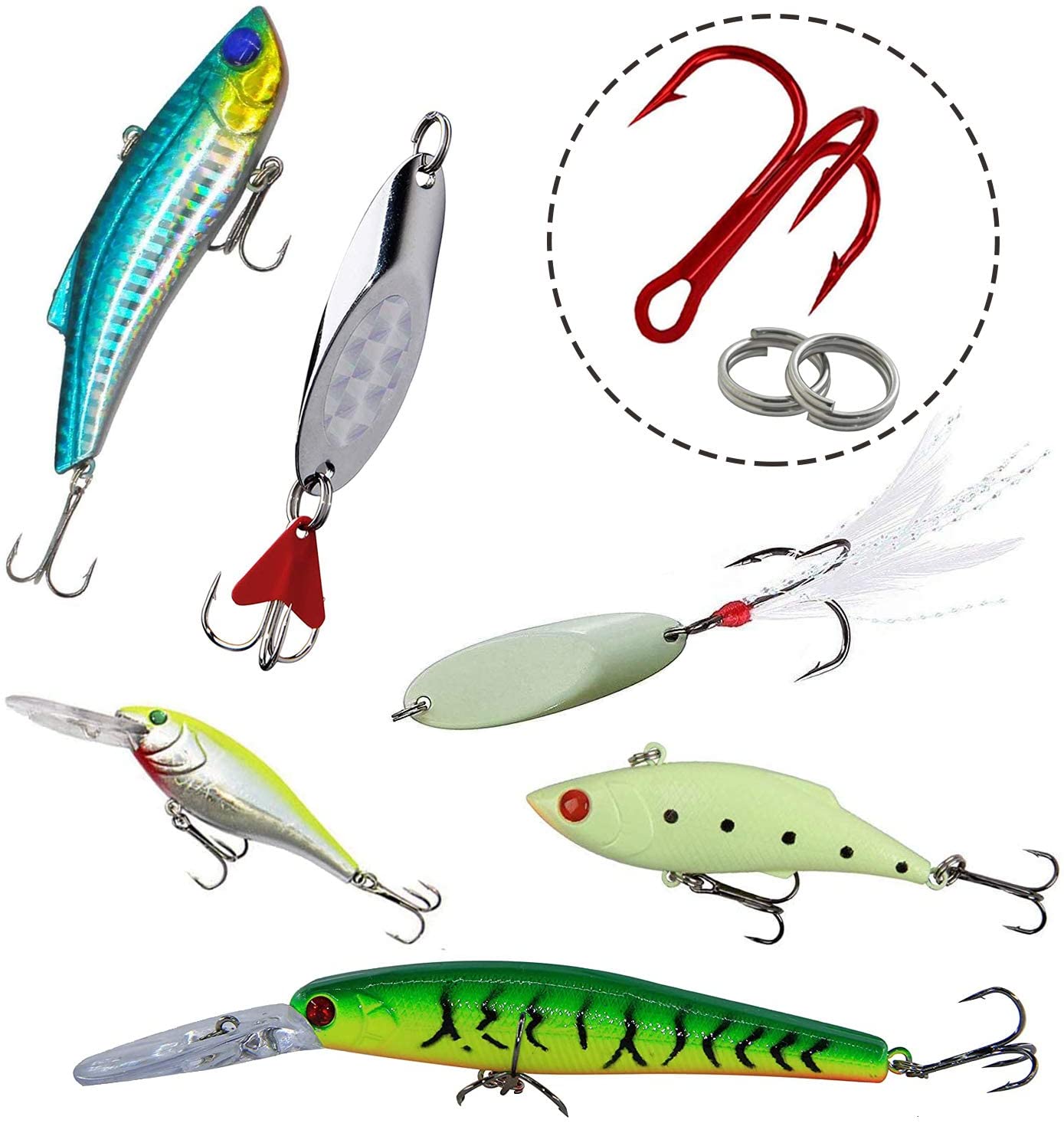 MATERIAL- Fishing treble hooks are made of high carbon steel ,and the split rings are made of the stainless steel, they’re strength and corrosion resistance.