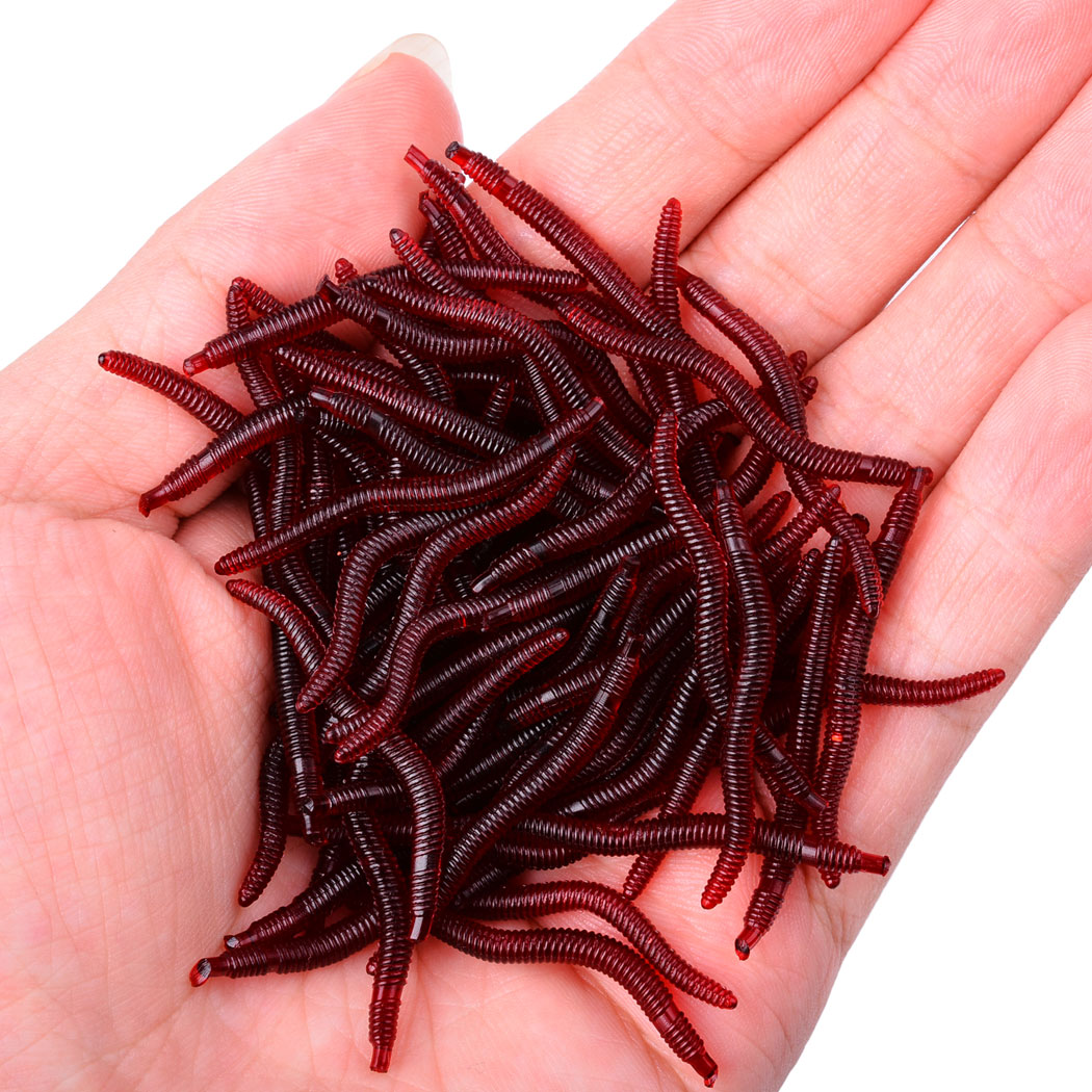 50Pcs / lot 3.6cm Simulation Earthworm red Worms Artificial Fishing Lure Tackle Soft Bait Lifelike Fishy Smell Lures