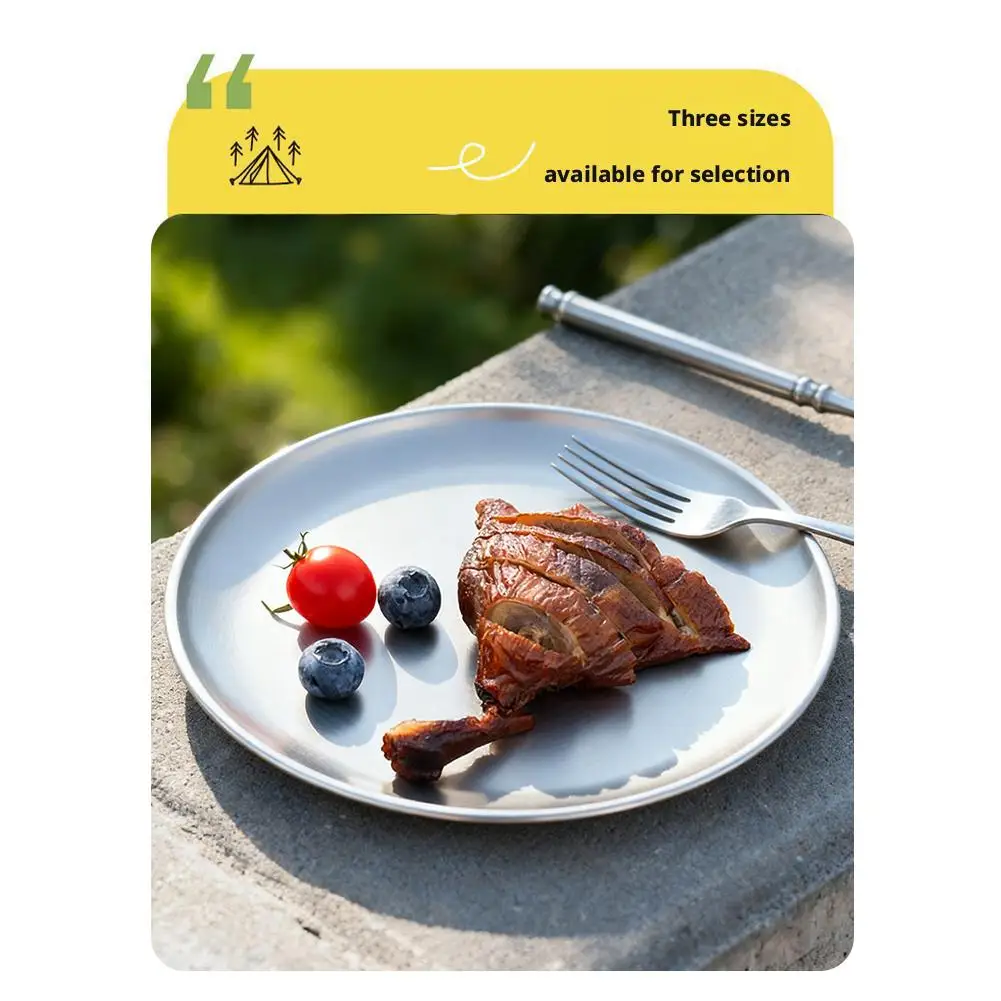 1. This titanium plate has a smooth edge design that feels gentle on your hands and mouth, making it easy to hold and use without any sharp edges, so you can enjoy meals comfortably indoors or outdoors.