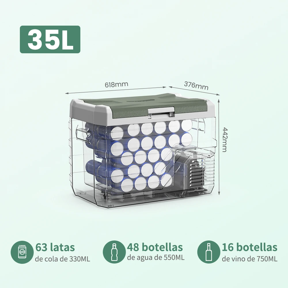 With the 25L/35L/45L optional of large storage space. This car fridge serves as a refrigerator or a freezer. You can easily adjust the temperature as you want, no ice needed! You can keep a variety of foods fresh on the go. Perfect for use in SUVs, RVs, campers, and even yachts, offering convenience wherever your adventures take you. NL30—25L, NL40—35L, NL50—45L (Model names are not related to actual capacity)
