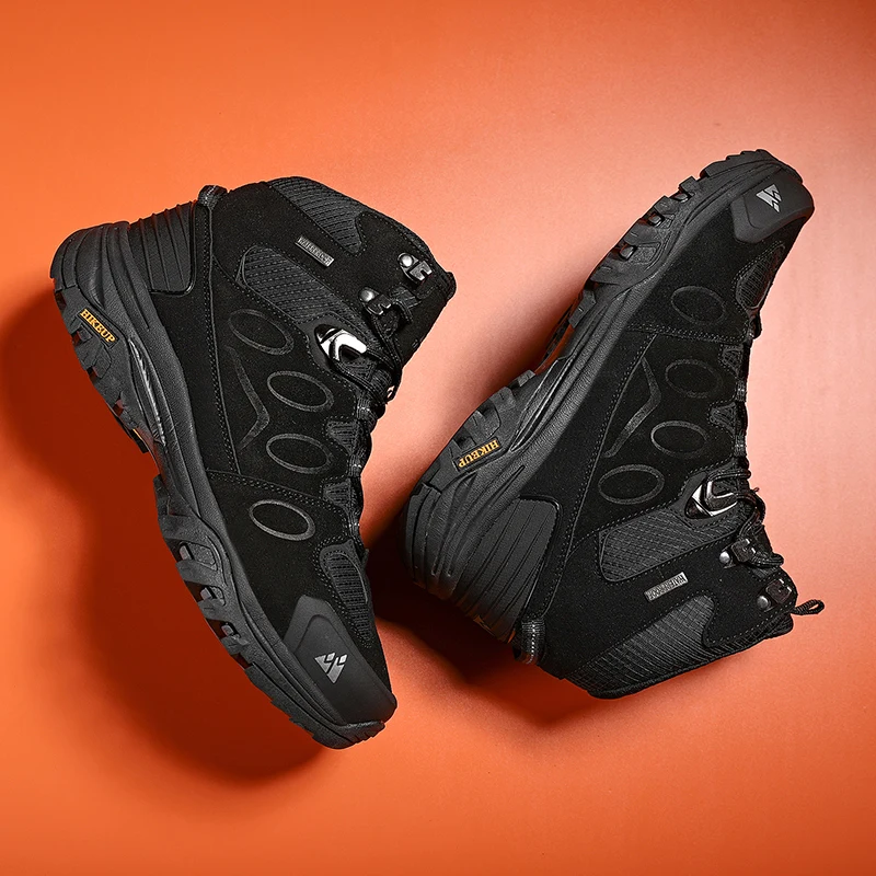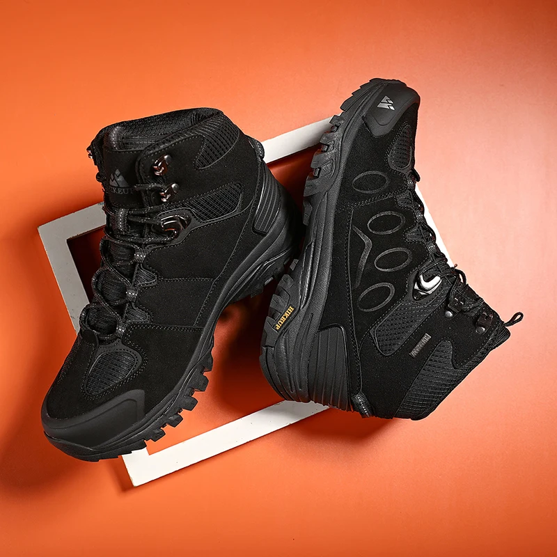 HIKEUP New Winter Boots High-Top Men Hiking Shoes Outdoor Boots Lace-Up Non-slip Outdoor Sports Casual Trekking Boots Man shoes Waterproof Suede