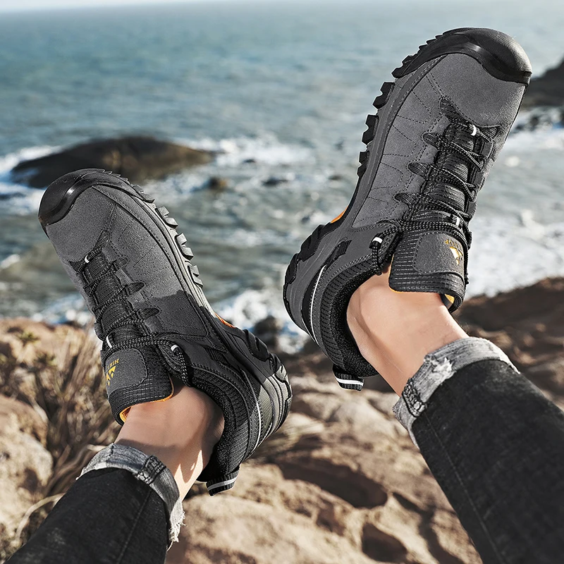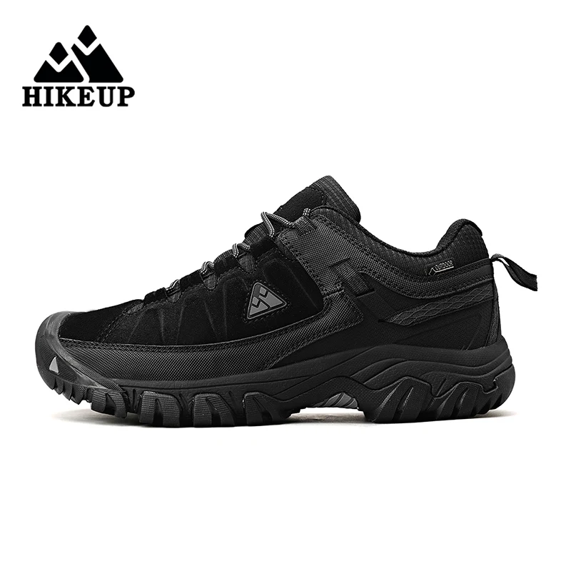 HIKEUP New High Quality Men Hiking Shoes Black Grey Green Khaki Leather Climbing Shoes Outdoor Walking Sneakers Rubber Sole Factory Outlet Made In China
