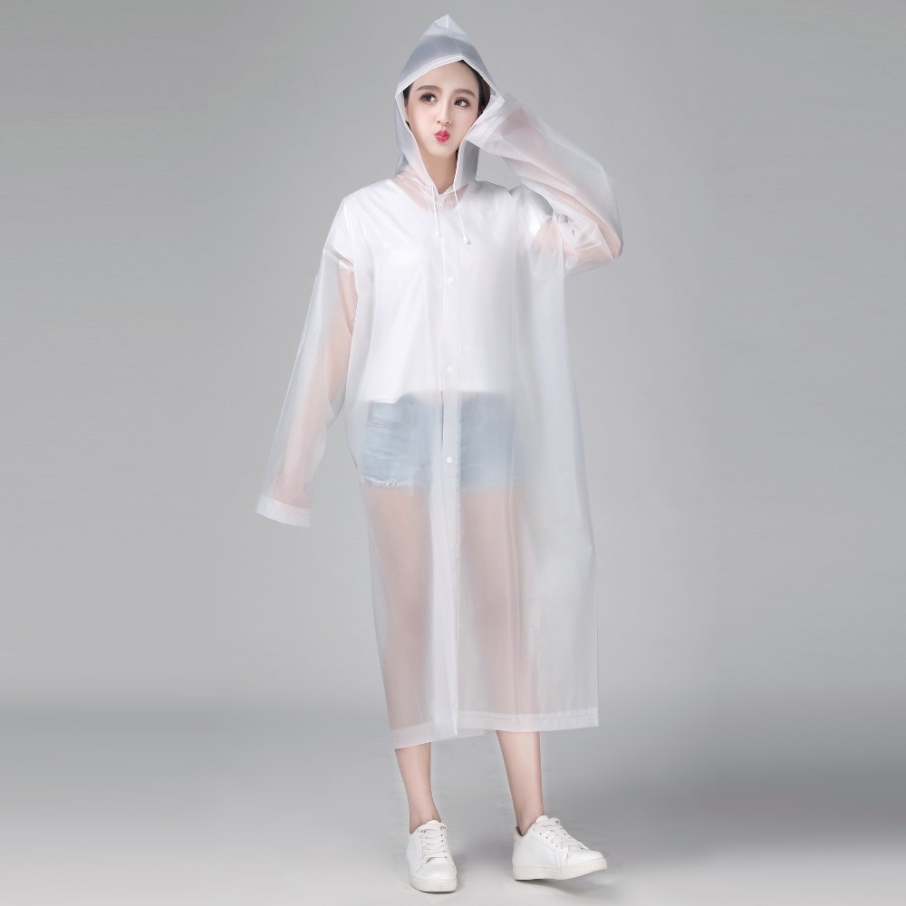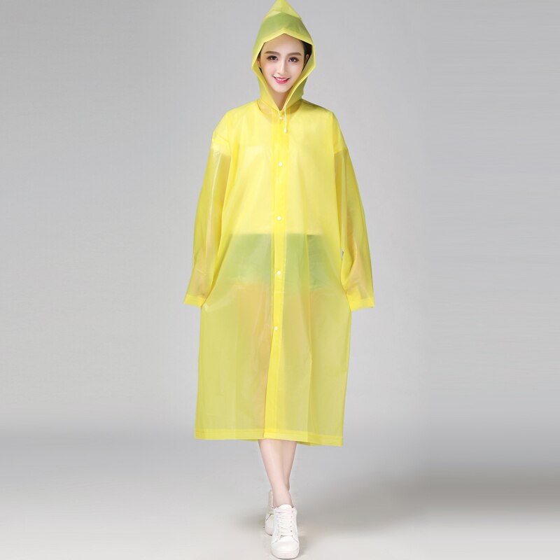 Material: EVA Color:Purple,rose red,yellow,white,blue Length(Not include cap):115CM Sleeve:65CM Bust:about138CM Fit Height: 160-180CM Package Content: 1pcs non-disposable half-transparent raincoats