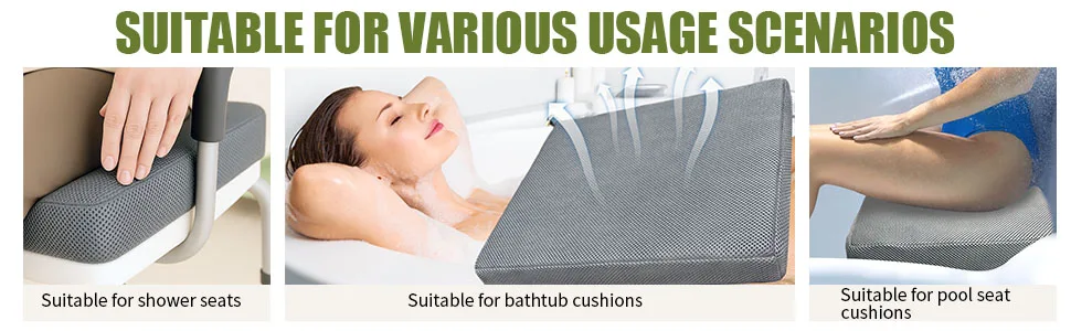 Comfortable Seating Experience:The high-resilience fiber material contours to body shapes, delivering even support. The soft surface of the shower cushion enhances comfort during use.