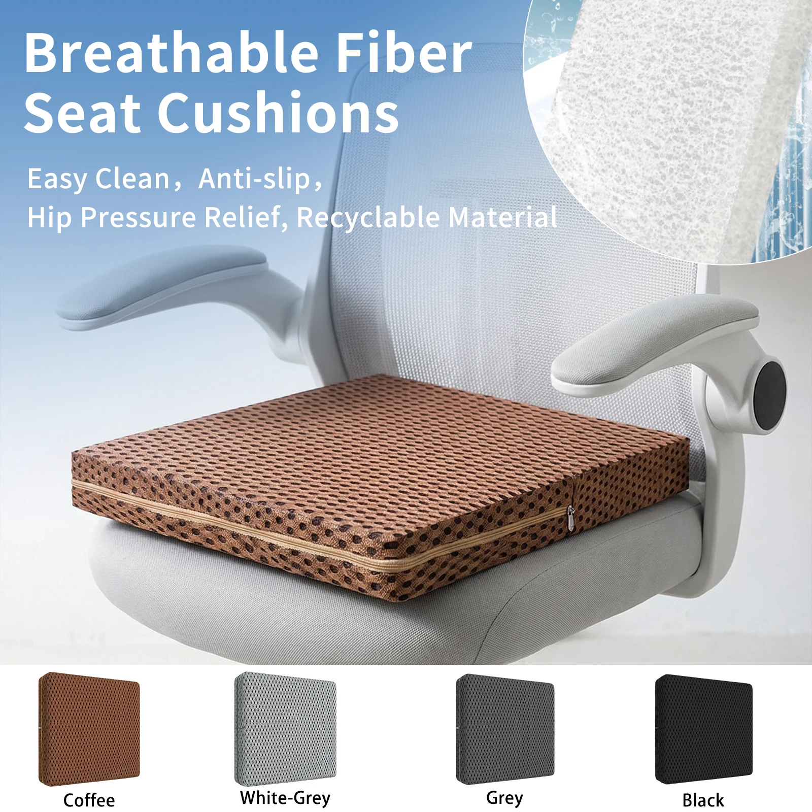 Tailbone Sciatica Back Pain Relief Comfort Office Chair Seat Cushion Wheelchair Non-Slip Breathable Fiber Seat Pad Cushion