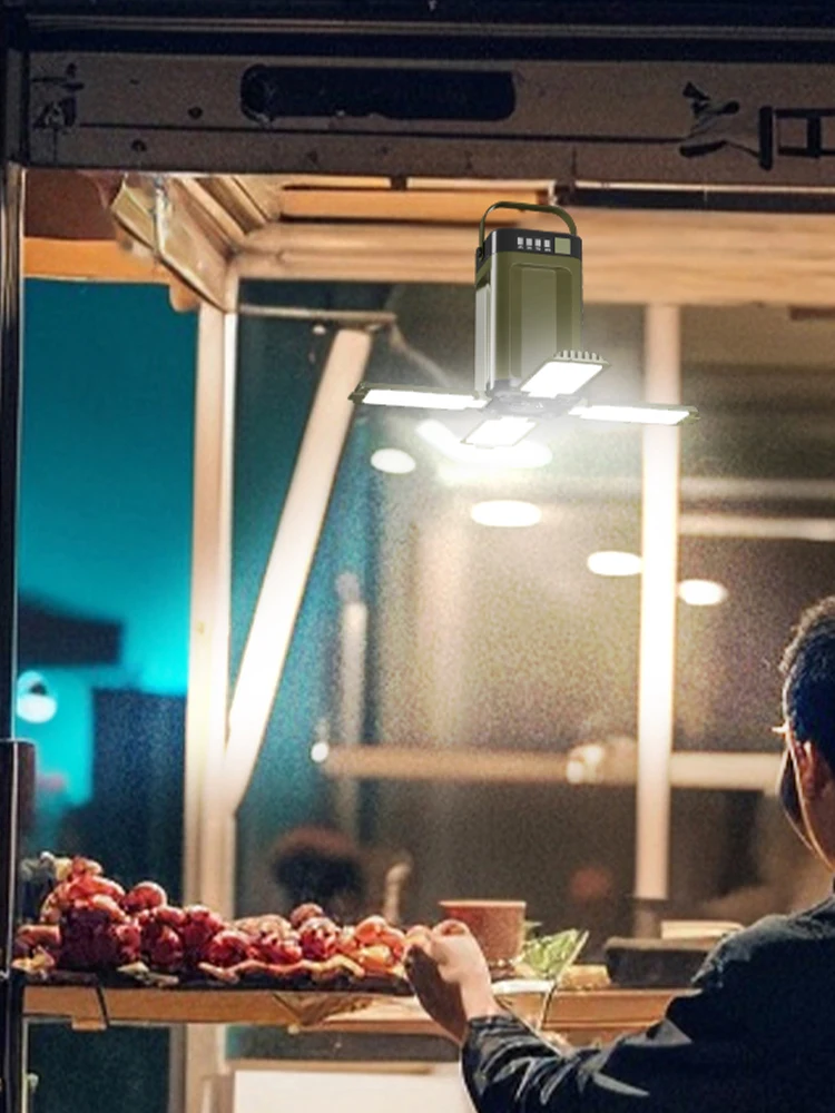 Features: 1.Solar-Powered Charging: Our foldable camping light can be recharged using solar energy, making it an eco-friendly choice for outdoor adventures. Keep it powered up even in remote locations. 2.4-Blade Folding Design: The rechargeable lantern features 4 blades that can unfold up to a 90-degree angle, providing ample illumination for your campsite or tent. 3.Multi-Functional Use: This solar camping lantern doubles as an emergency power source for your phone and serves as a reliable portable flashlight during camping trips. 4.Battery Level Display: Stay informed about the remaining power with the clear LED tent light battery level indicator, ensuring you are never left in the dark unexpectedly. 5.Convenient Handle Design: Easily carry and hang your LED tent light with the integrated handle, for hands-free lighting and effortless transport. Specification: