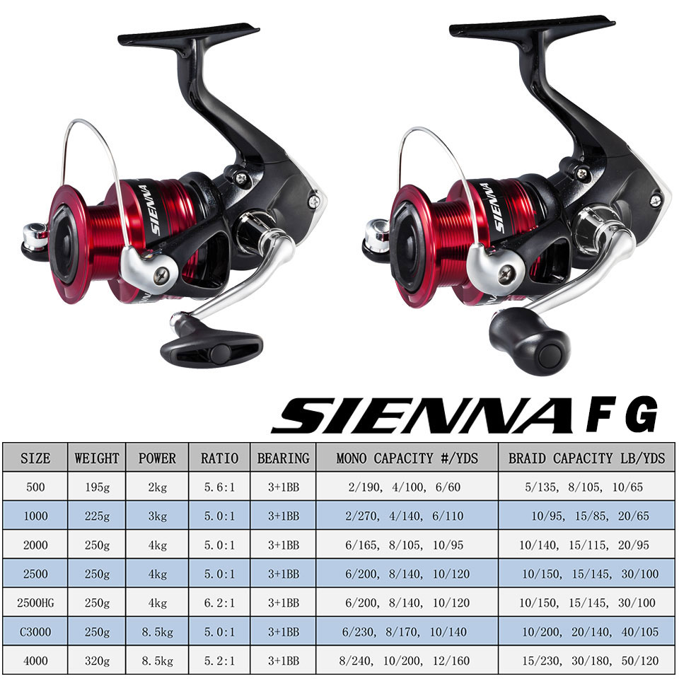 SHIMANO SIENNA Spinning Fishing Reel Seawater/Freshwater 1000FG/2500FG/4000FG Aluminum Spool spinning reel carretilha de pesca